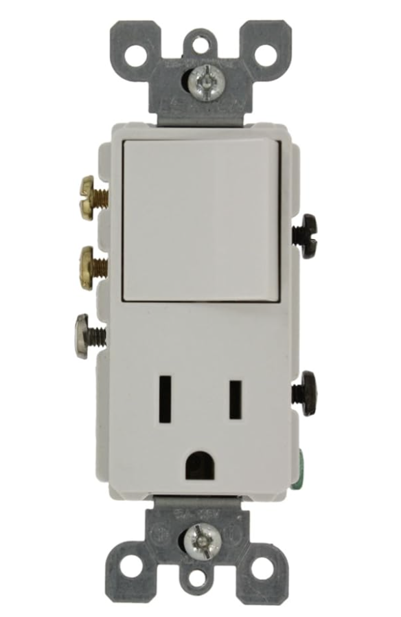 Leviton 5645-W Interruptor combinado Decora de 3 vías/CA, 15 amperios, 120 voltios, grado comercial, puesta a tierra, color blanco