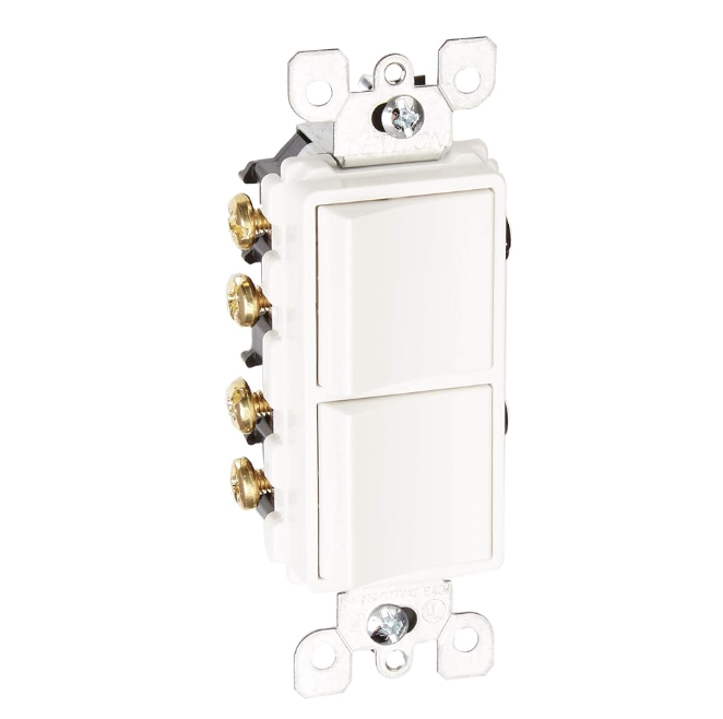 El interruptor de combinación Decora de Leviton 5643-W es la elección perfecta para cualquier zona del hogar. Su diseño simple y funcional permite ahorrar espacio en el lugar donde se instala el interruptor. Con un atractivo estilo y como parte de la famosa línea Decora, el interruptor está disponible en numerosos colores populares. Su exterior resistente al impacto garantiza la protección contra el daño y una vida útil prolongada.