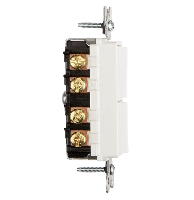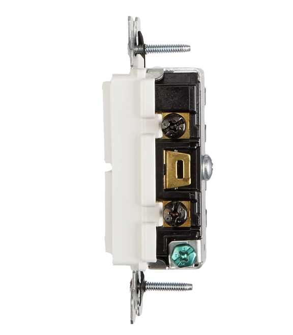15 A, 120/277 V, Interruptor de combinación de CA de 3-Way/3-Way Decora, Grado de especificación residencial/comercial, Conexión a tierra, Cableado lateral – blanco