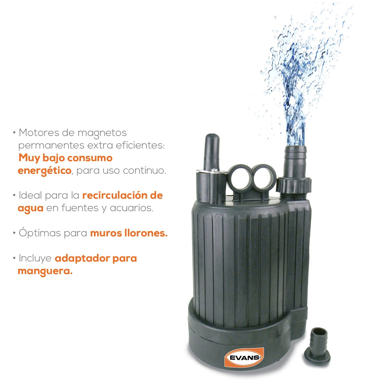 Descubre la bomba sumergible Evans, diseñada para ofrecer un rendimiento excepcional y confiable en diversas aplicaciones. Con un motor eléctrico eficiente y una bomba robusta, esta unidad es ideal para quienes buscan una solución duradera y eficaz para el bombeo de agua.