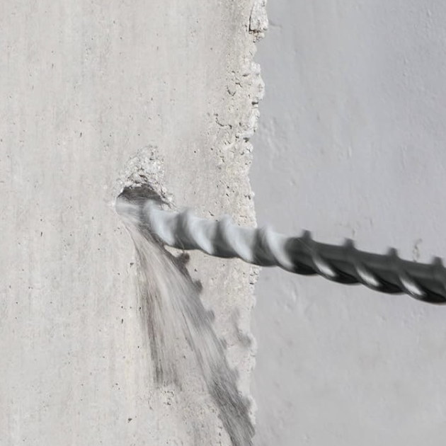 La punta de 6-filos de la broca está diseñada para perforación en concreto armado