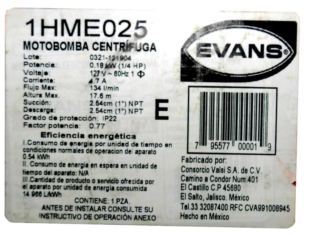 BOMBA CENTRIFUGA ELEVACIÓN EVANS 2 HP